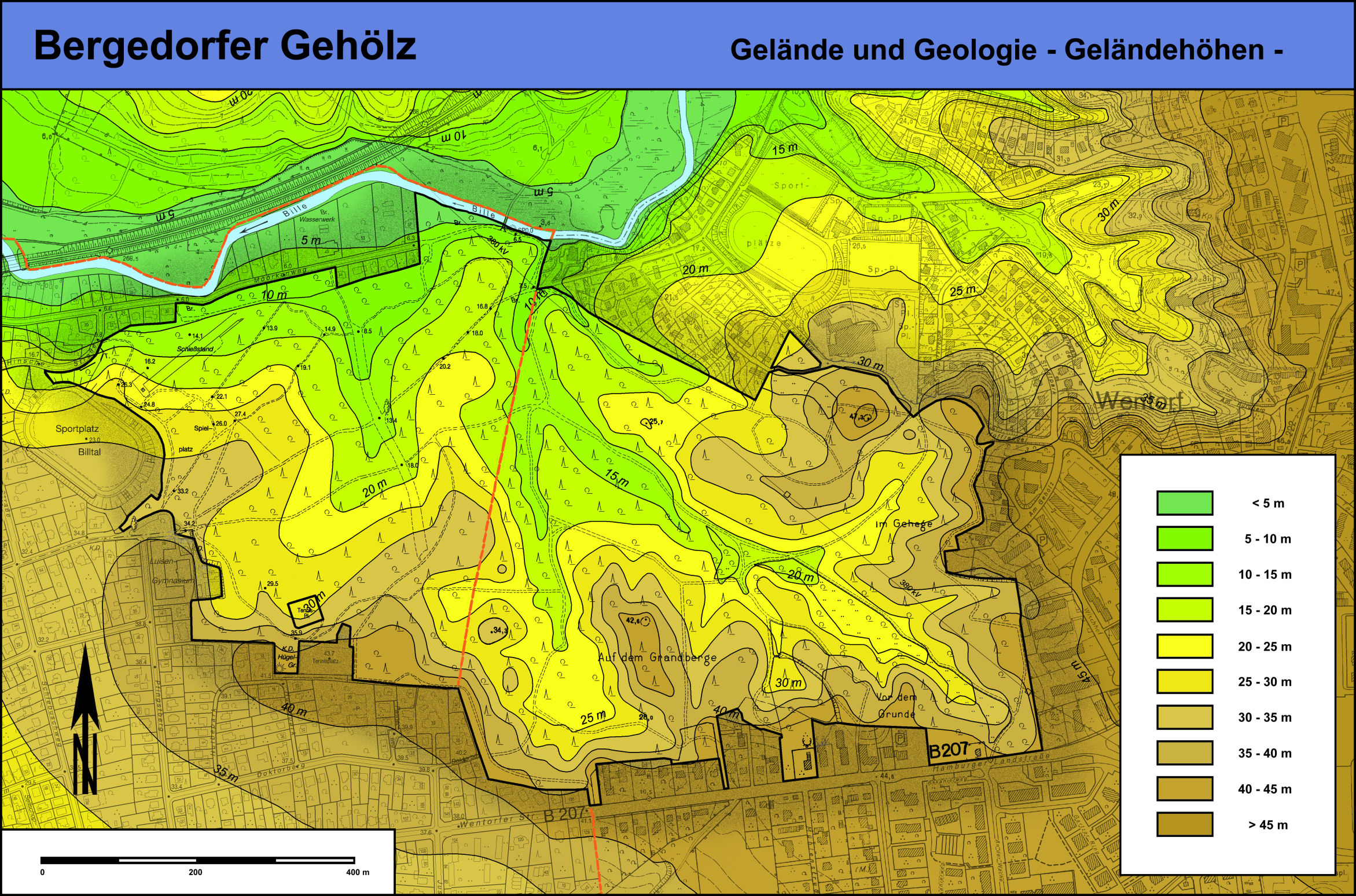 Osten bis auf das Höhenniveau der Bille von ca. 5 m NN hin